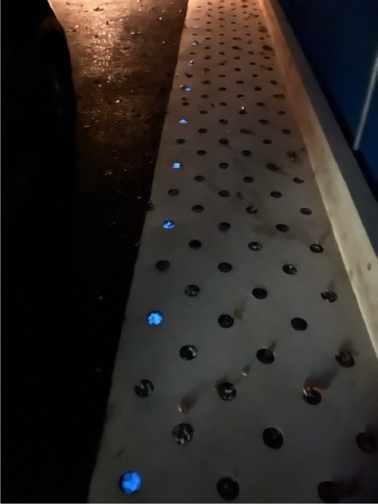 穴の仕上げには畜光石を使用!昼間は白色、夜は青に光ります!!