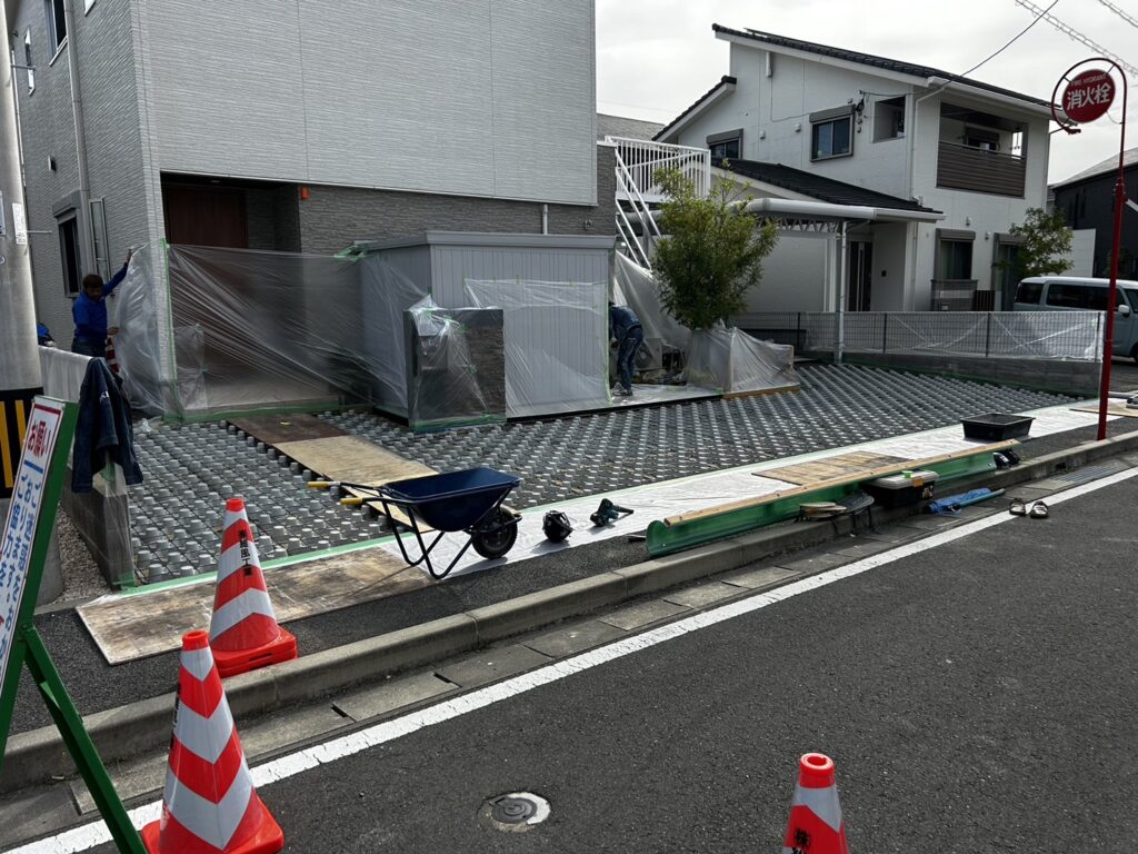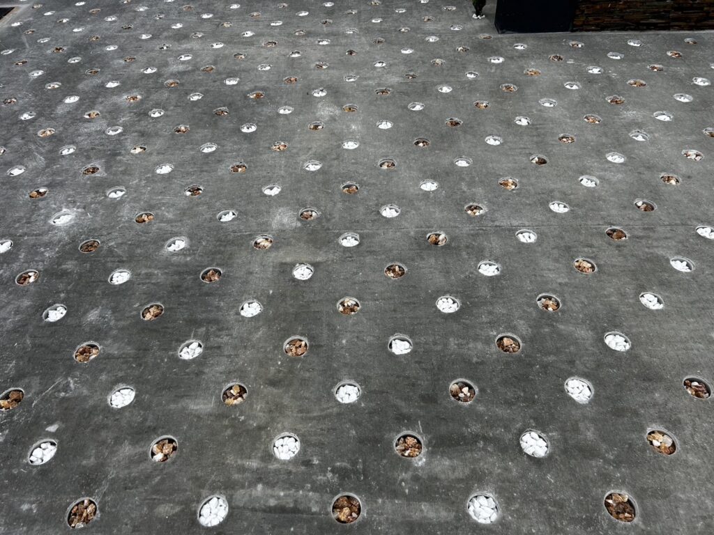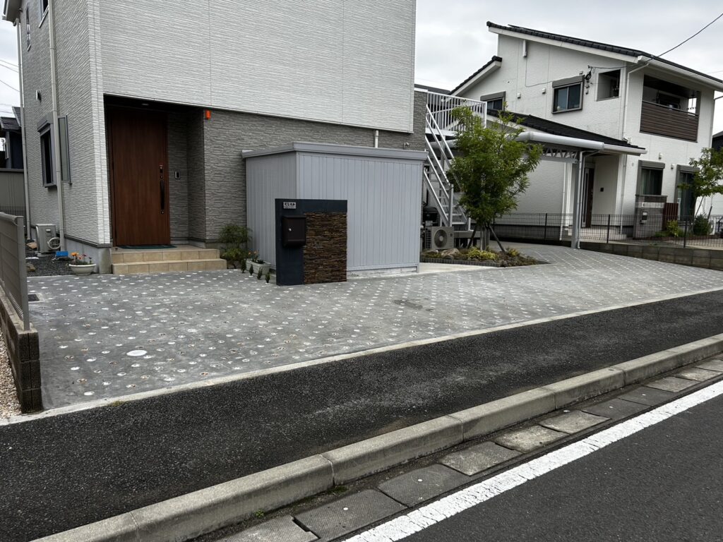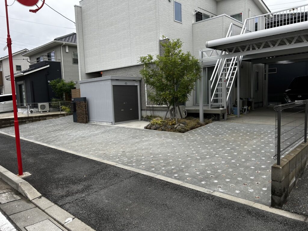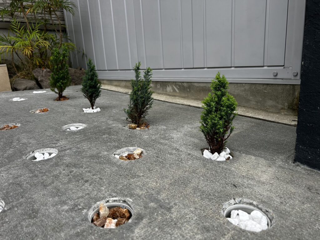 住宅の駐車場57㎡をDotconで施工して頂きました! 穴の中には砂利とゴールドクレスト🌲