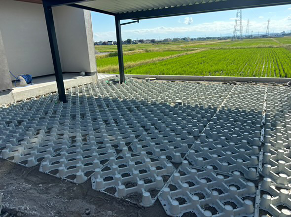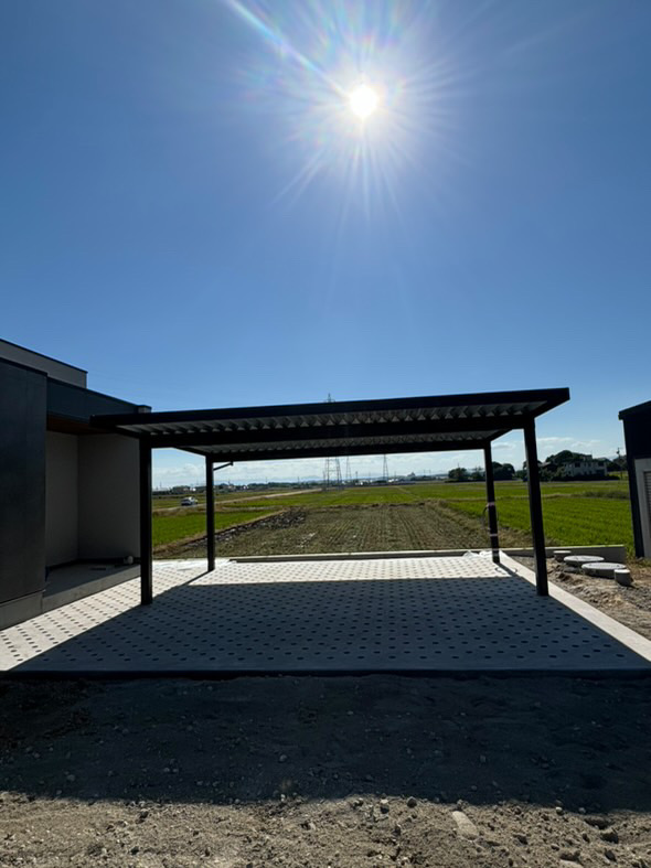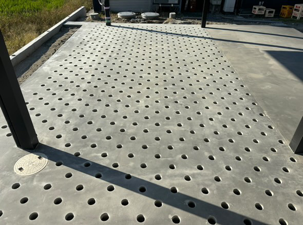 カーポート下の駐車場をDotconを施工☝️ Dotconは透水率100%なので、水勾配を取らなくても大丈夫!