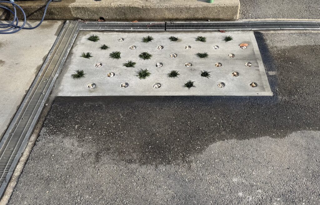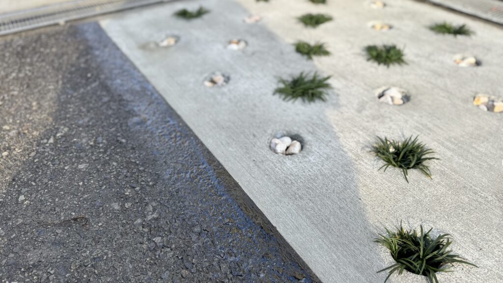 階段下の玄関部分にDotconを施工☝️ 玉竜と黄色系の石での仕上げ!✨🪨
