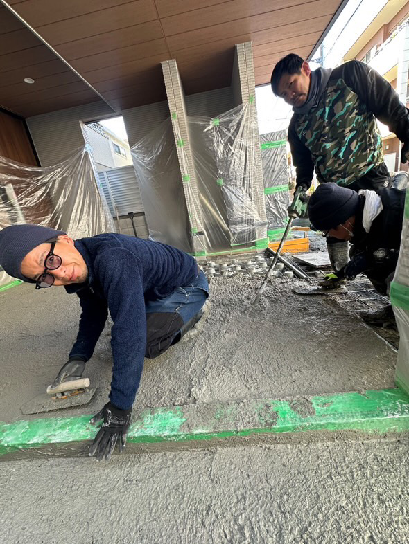 戸建住宅の駐車場をカーボンニュートラルコンクリートでDotcon施工👷 [カーボンニュートラルコンクリートとは、コンクリートの製造・施工・廃棄までの過程で発生するCO₂排出量を、 吸収・削減技術を活用して実質ゼロ(カーボンニュートラル)にすることを目指したコンクリートです。] パートナー施工店様3社で施工してくださいました❗️ありがとうございます!