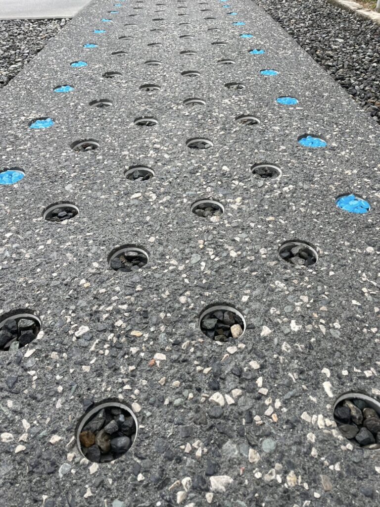 沼津市にて、普通生コンの洗い出しでドットコンアプローチ(5㎡、パネル4枚使用)をDotcon施工👷 とてもおしゃれでスタイリッシュなアプローチになりましたね!✨