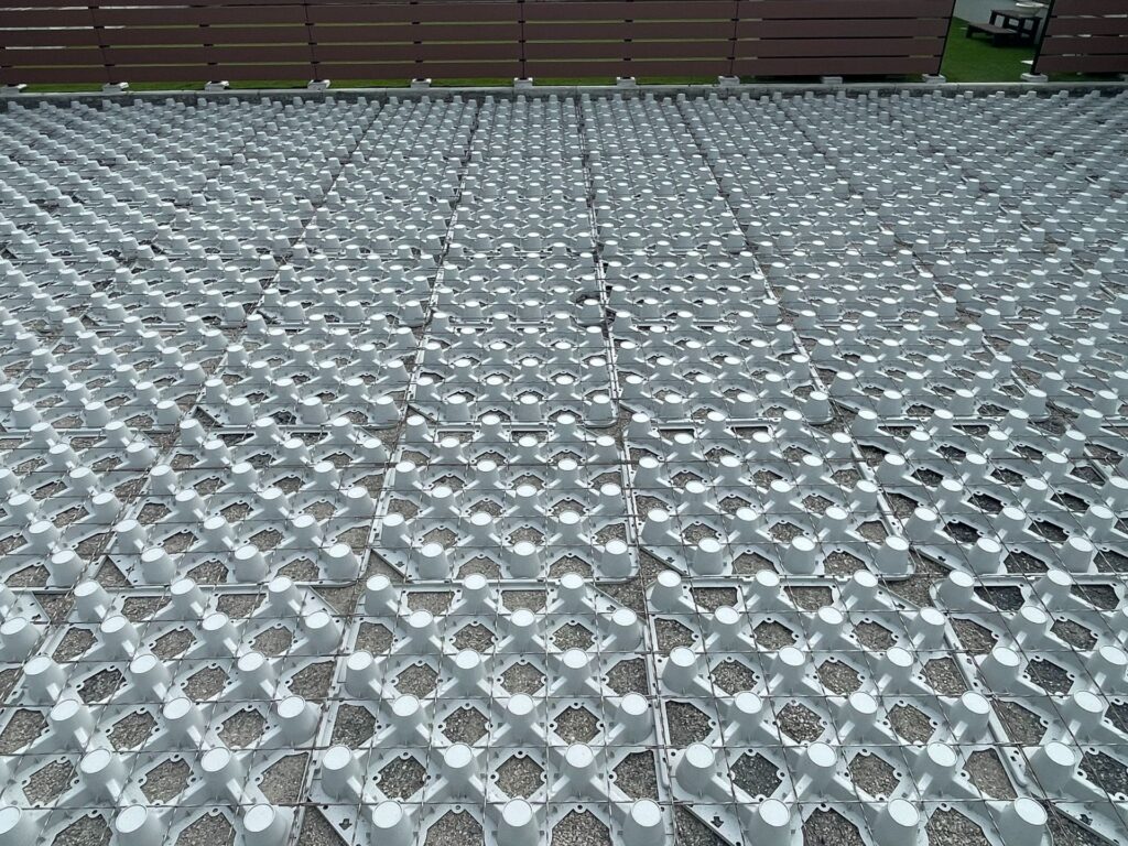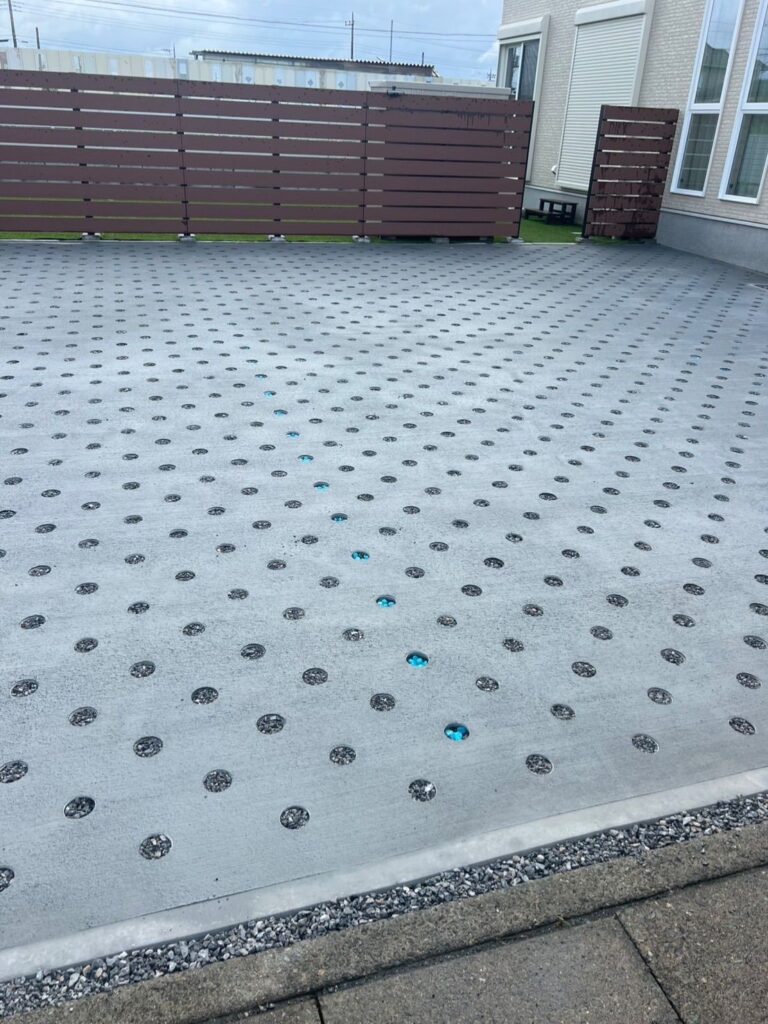 駐車場100平米にDotcon施工🚧 お洒落なフェンスとの相性もとても良いですね!