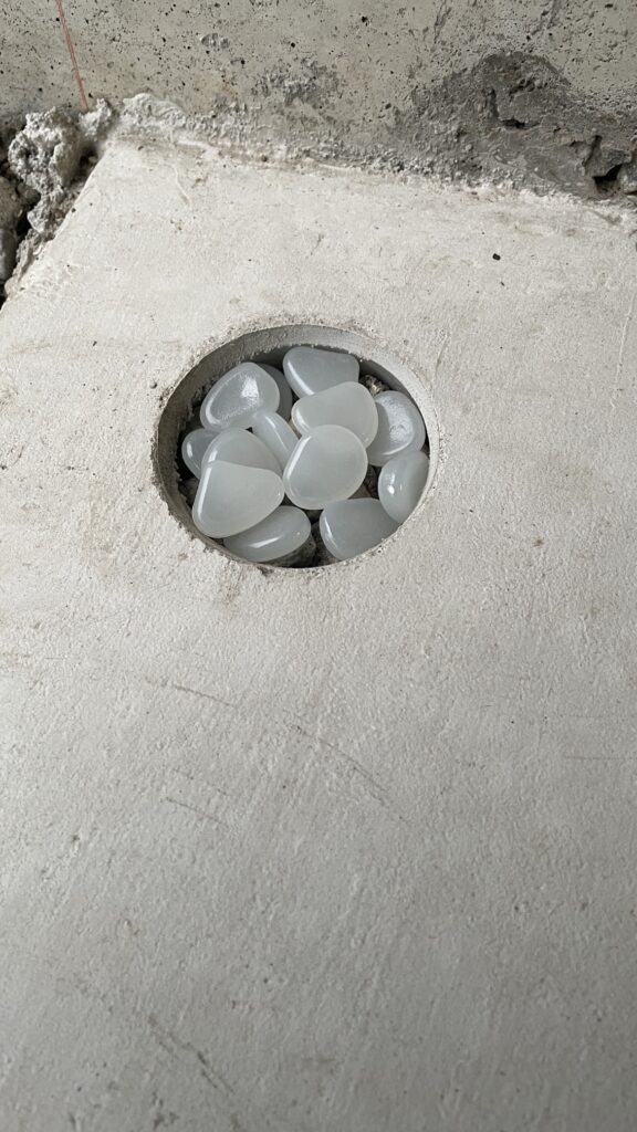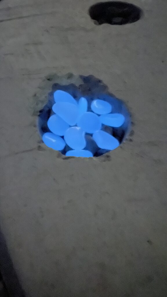 カーポートの下にDotconを試験施工していただきました🚧 蓄光石を入れた仕上げが可愛く、お子様のおままごと会場になっていたとのこと😊