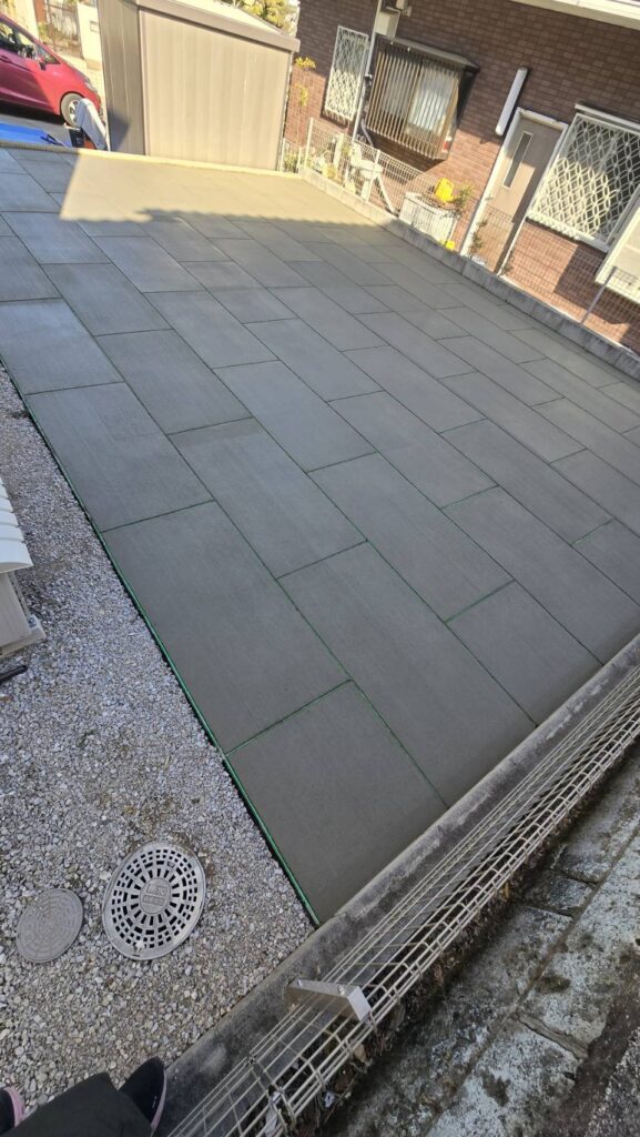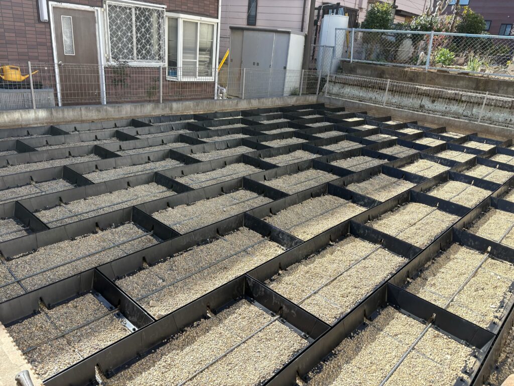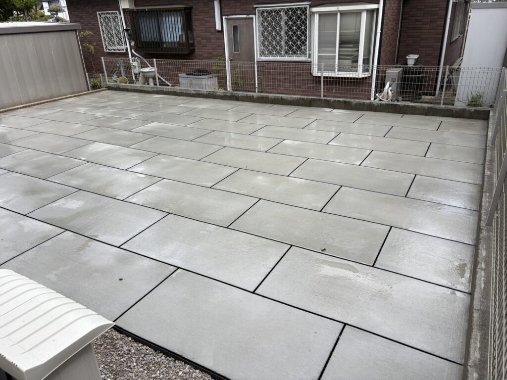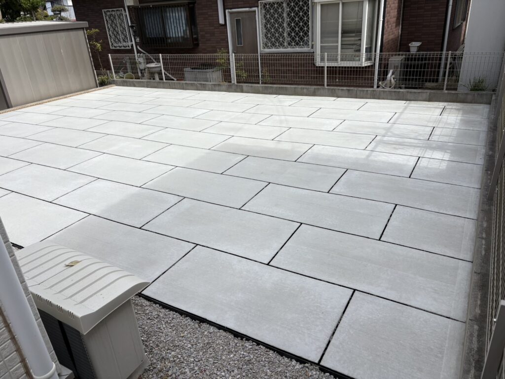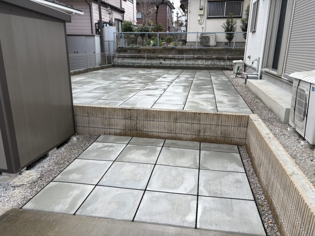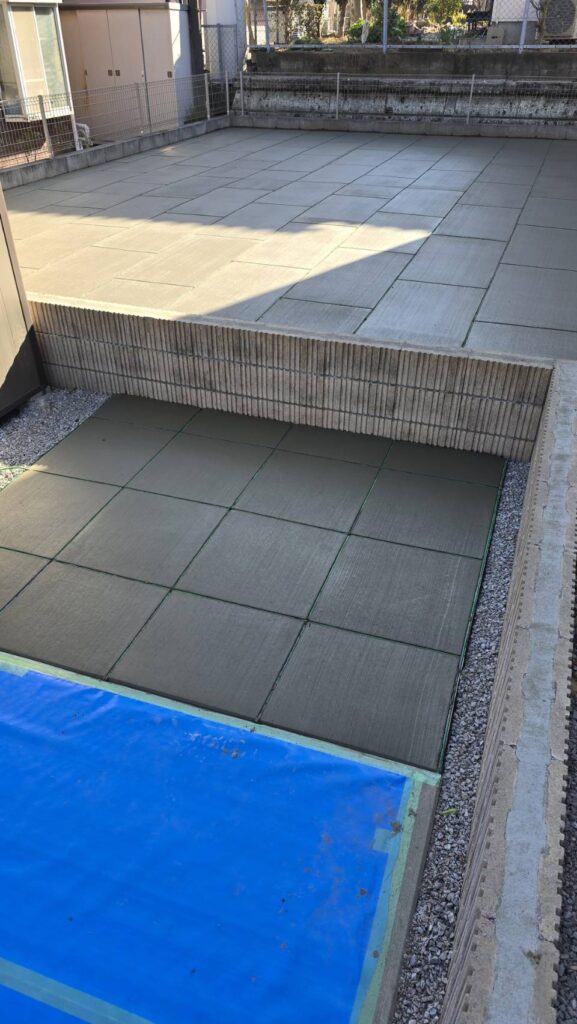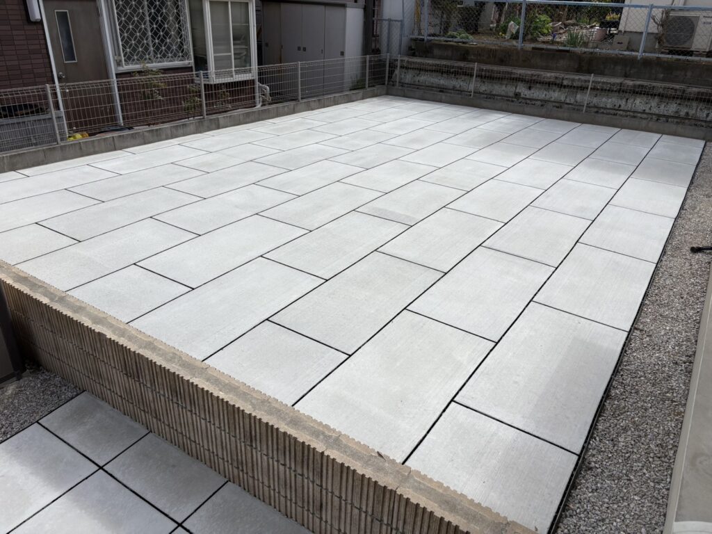 埼玉県坂戸市の戸建て住宅のお庭にて、正方形タイプと長方形タイプを組み合わせた施工を実施しております。