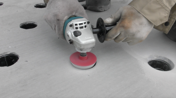 専用アタッチメントを使用し、ドット部外周のコンクリートバリ等を取り除く