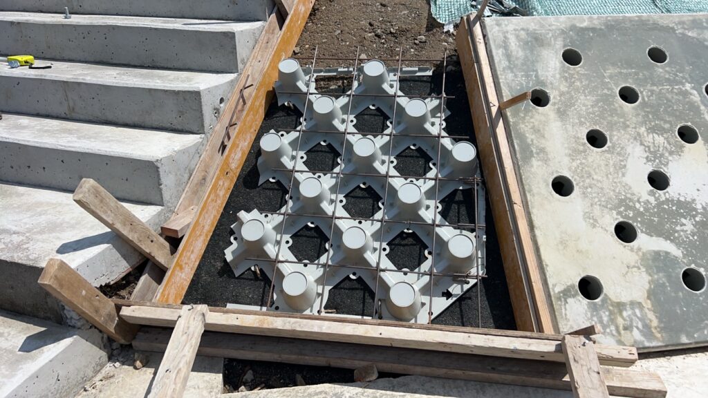 通常のコンクリートの法面はコンクリートで固めてしまうので緑化ができません。