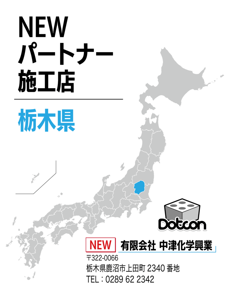 このたび栃木県でのDotcon施工をさらに強化すべく、新たに「有限会社 中津化学興業」様がパートナー施工店として加わりました!🎉