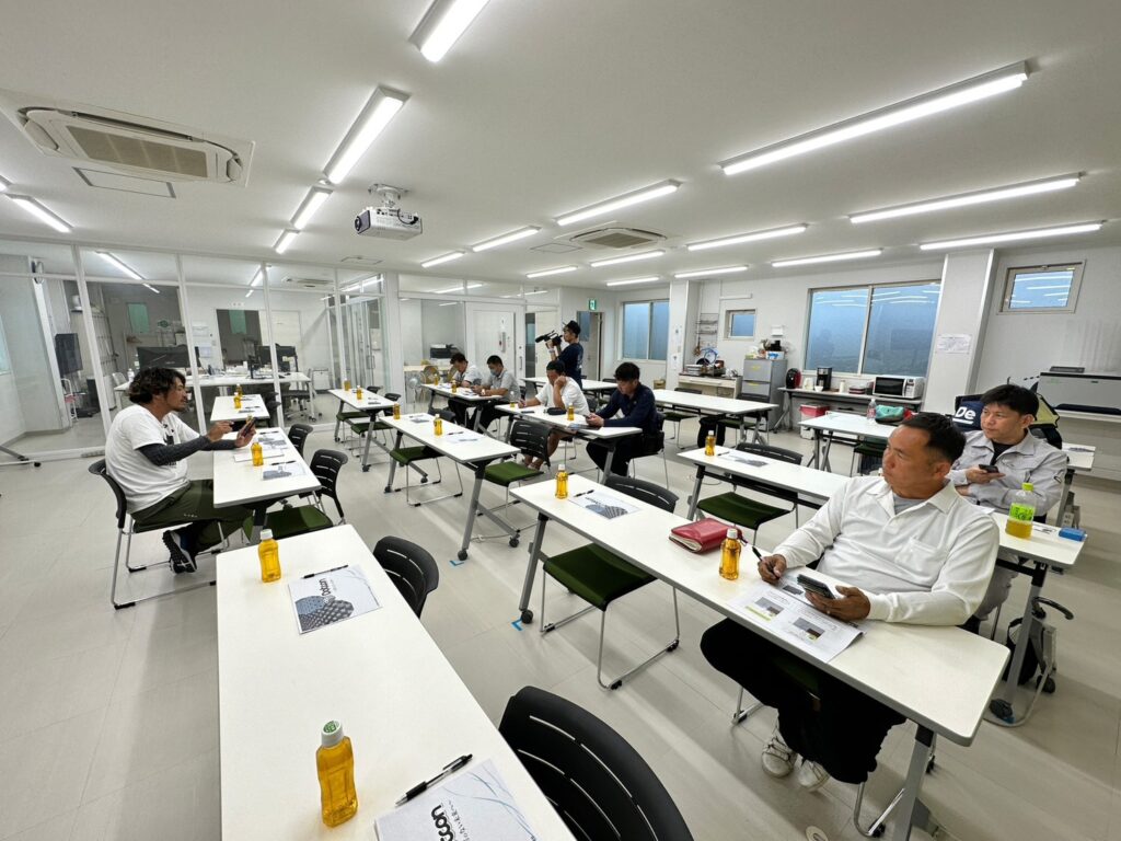 本日はあいにくの雨ではありましたが、株式会社毛受建材様にてドットコンとエコスルプラスの体験会を行いました!☔️