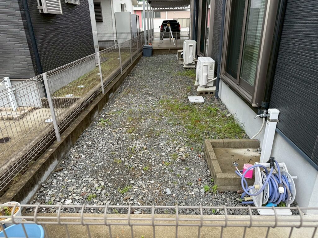 新築時に外構工事で防草シートを施工していない為、雑草に悩まされていたお宅に施工