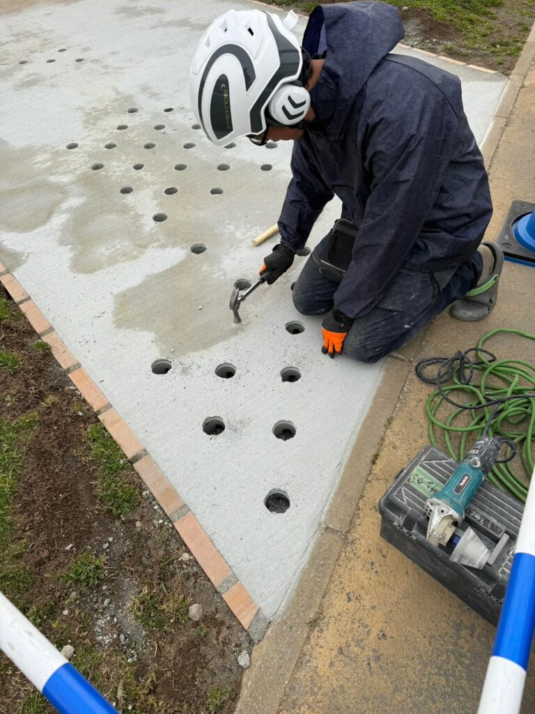 このたび、静岡県のパートナー施工店・株式会社長岡生コンクリート様によるDotcon 施工🚧Dotcon ver.2が公共事業(静岡県函南町)の公園で採用されました!🔨Dotconとザンコン™︎ のコラボ川の駅伊豆ゲートウェイ函南にて20平米