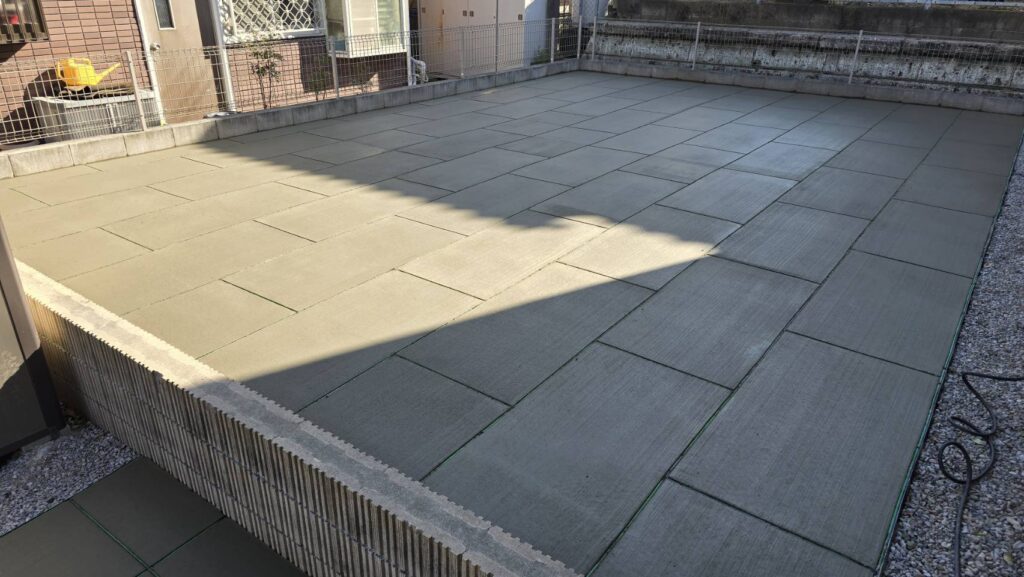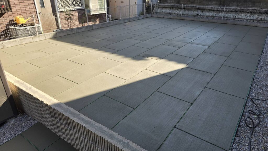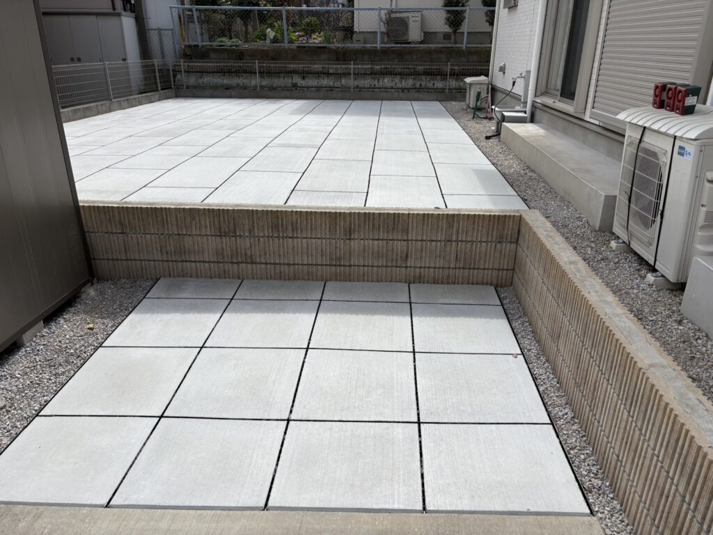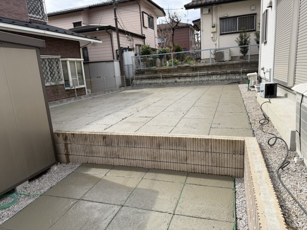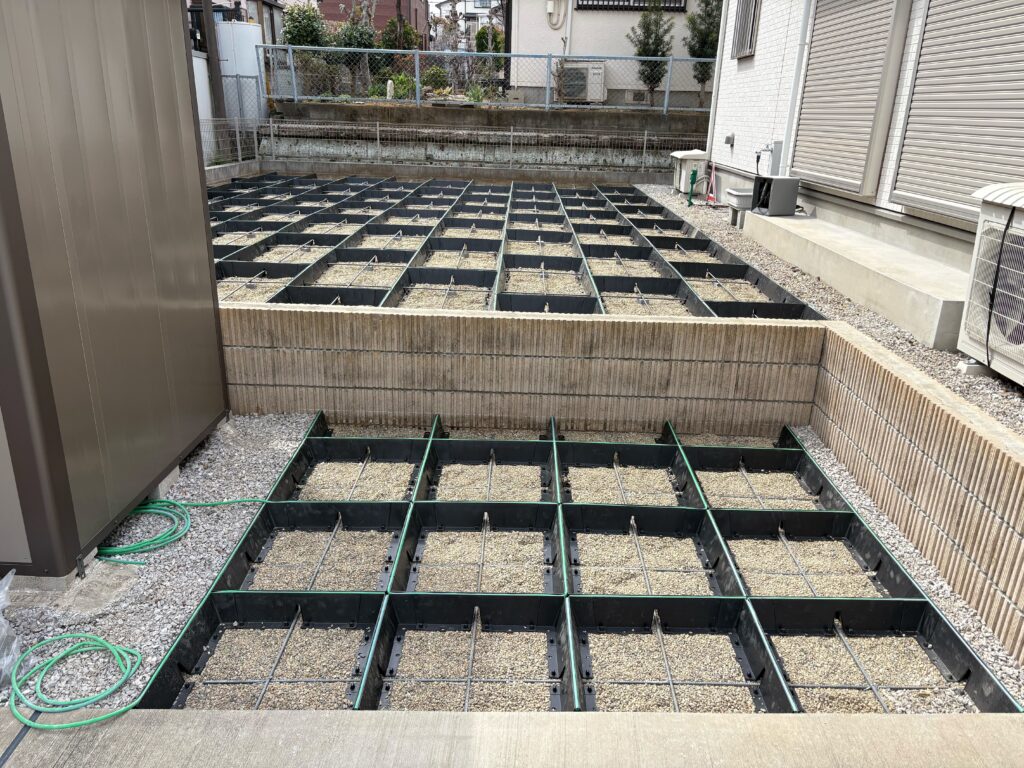 埼玉県坂戸市の戸建て住宅のお庭にて、正方形タイプと長方形タイプを組み合わせた施工を実施しております。