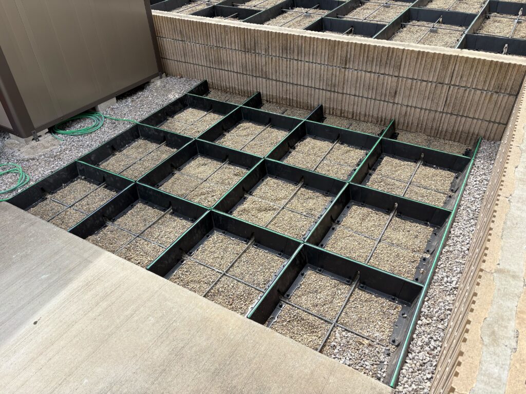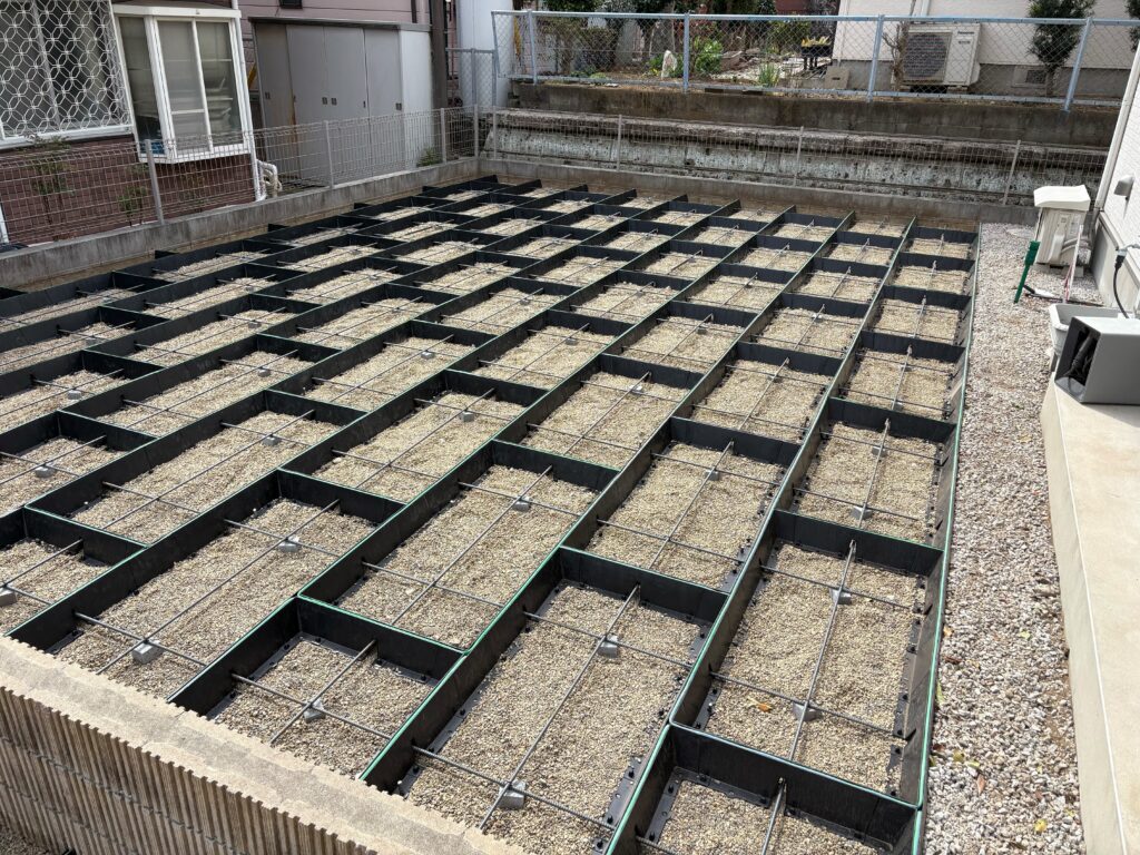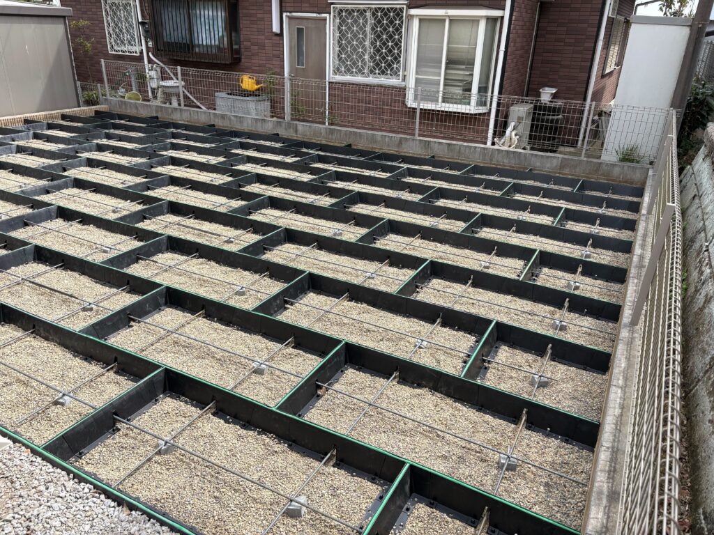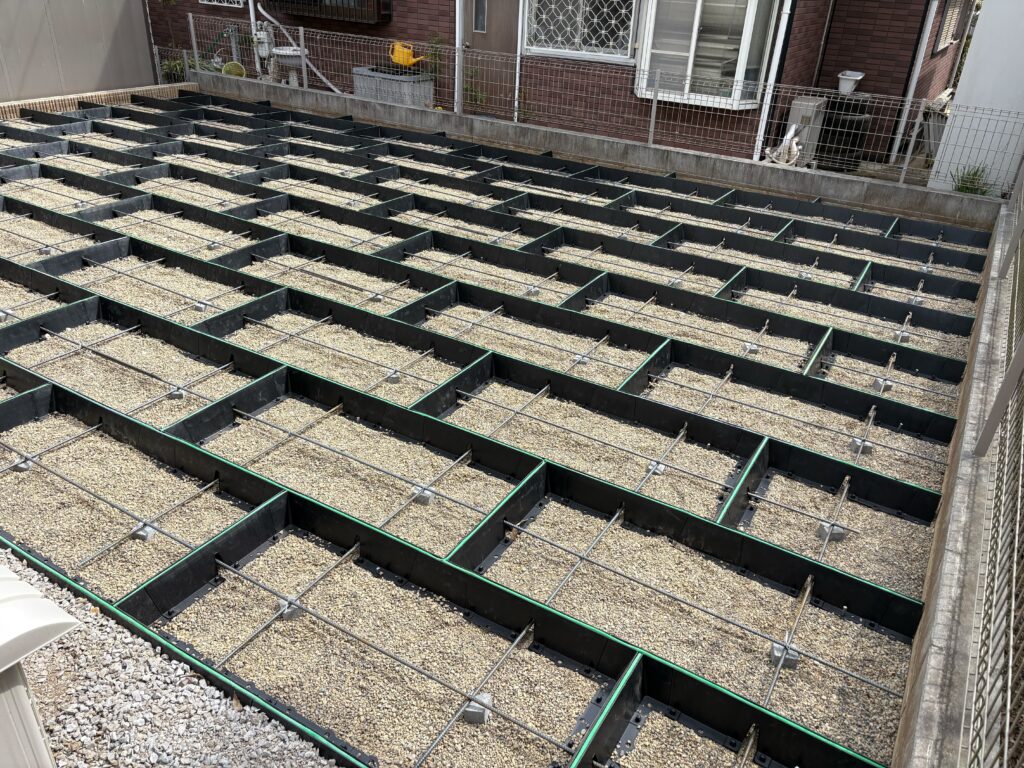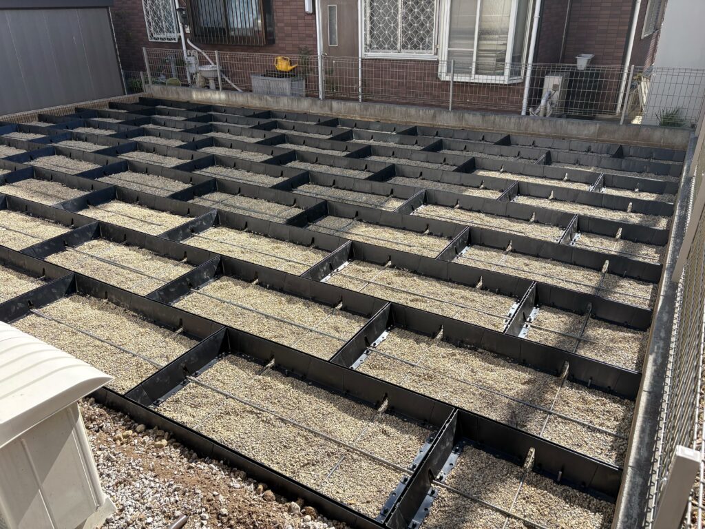 埼玉県坂戸市の戸建て住宅のお庭にて、正方形タイプと長方形タイプを組み合わせた施工を実施しております。