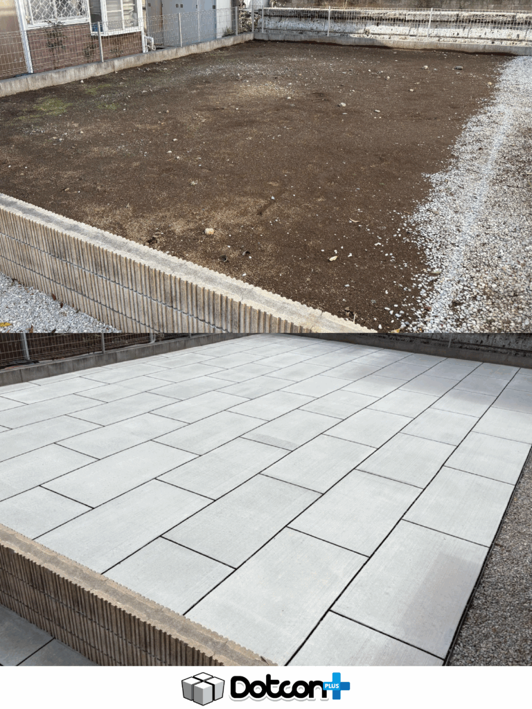 これまでお庭に水が溜まりやすく、歩きづらい状態でしたが、YouTubeでDotcon+を知っていただき、この度ご依頼いただきました。