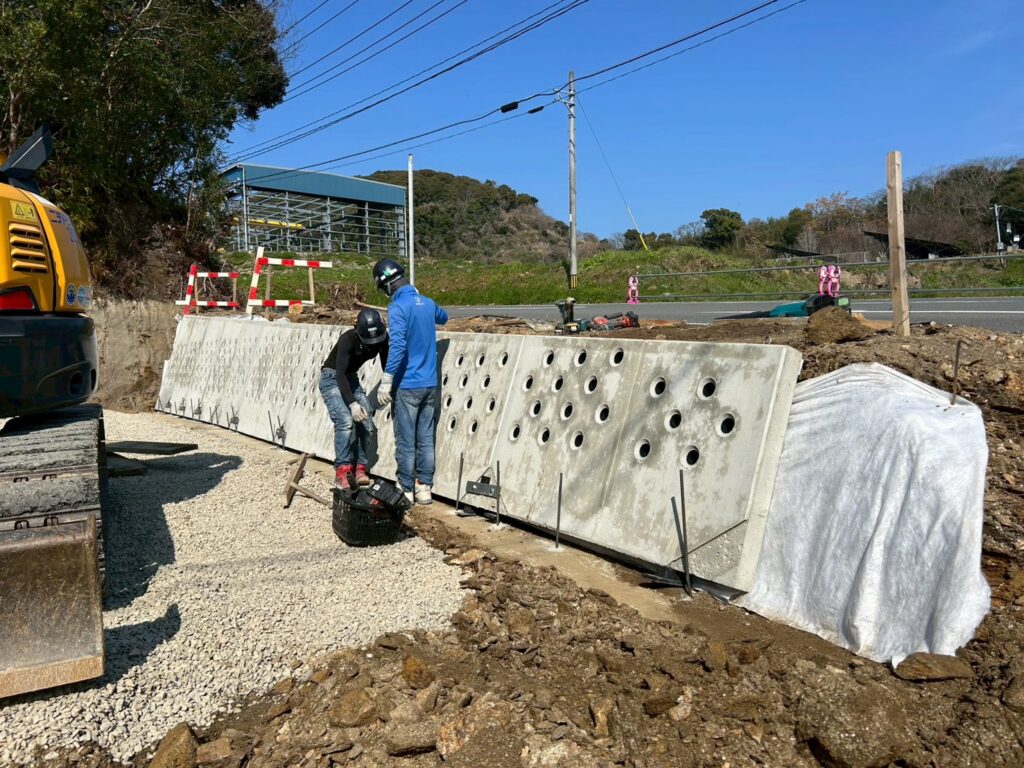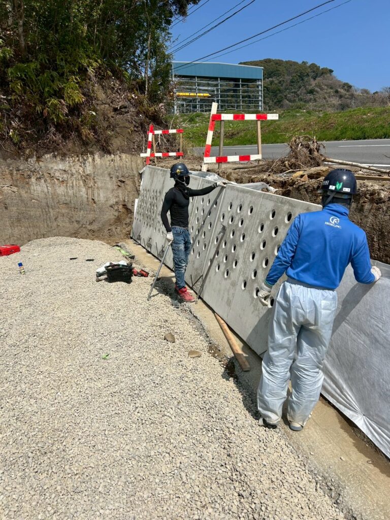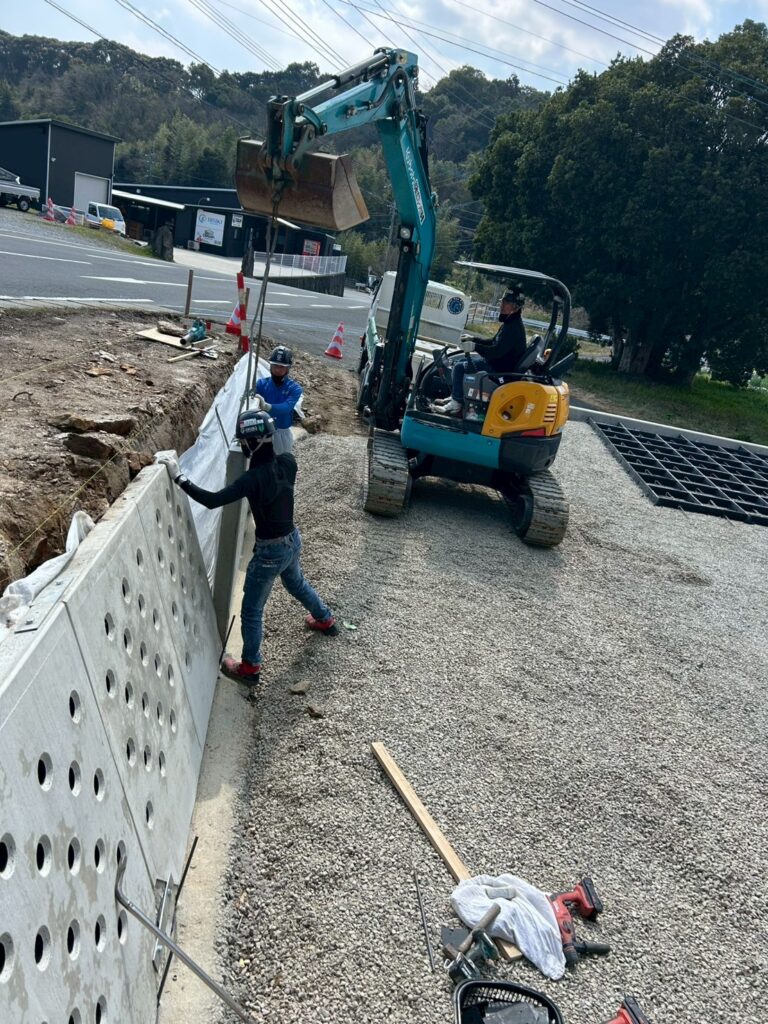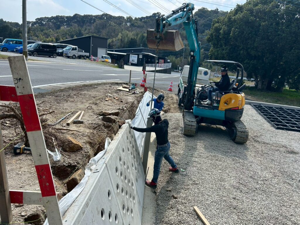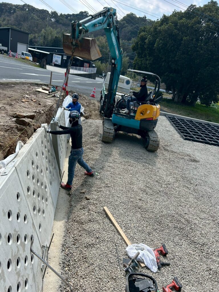 このたび、長崎県のパートナー施工店 株式会社維風工業様によるDotcon 施工🚧展示場をなるべくフラットにする為道路との段差ができたので土止めにDotcon ver.2を施工していただきました!🔨