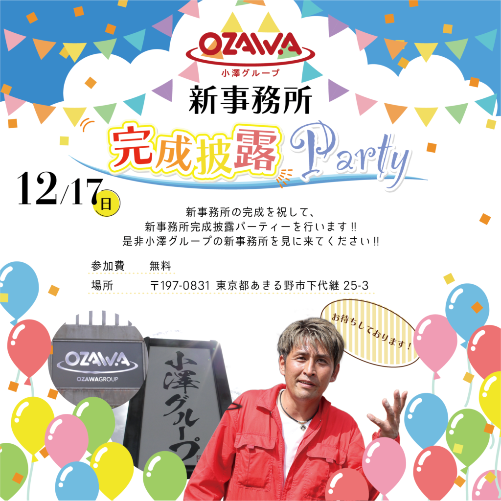 それに伴い、12月17日(日)に新事務所完成披露パーティーを行います‼️🎊