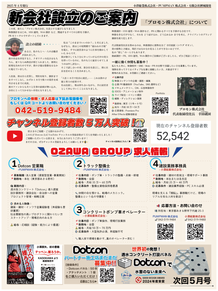 いつもお世話になっております❗️小澤グループ新聞4月号が創刊されました。