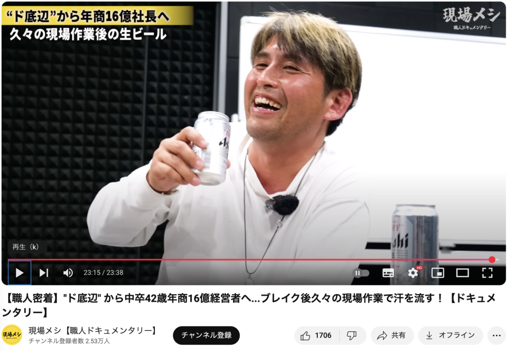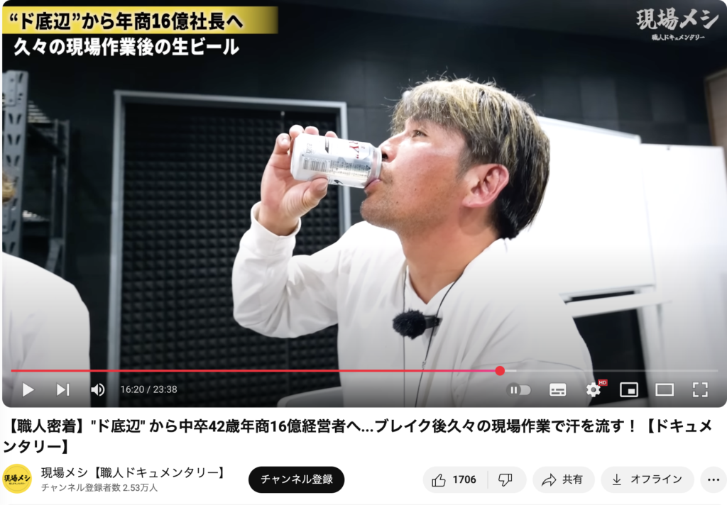 現場で働く職人たちに密着し、その一日の仕事ぶりと“終わりのメシ”にフォーカスする、ドキュメンタリー形式のYouTube番組です。