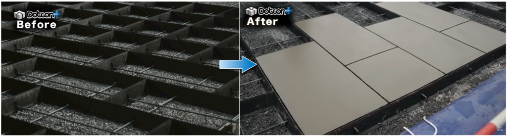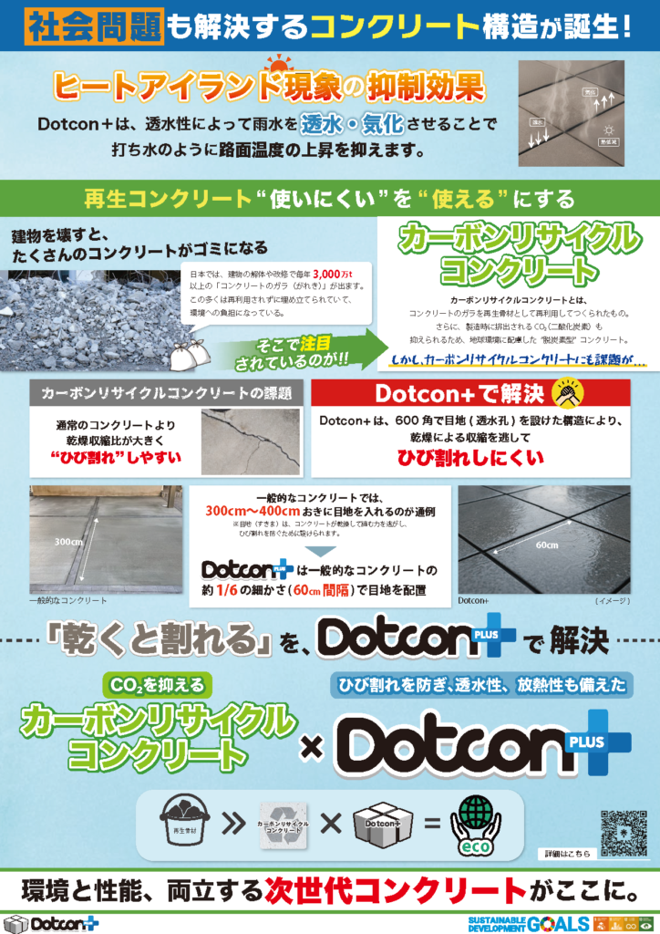 『Dotcon+』は、透水・貯留・浸透性能を備えた次世代型コンクリート舗装材です。