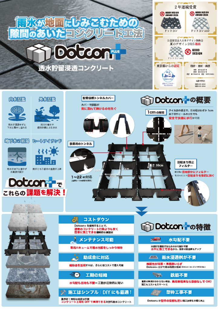 PUMPMAN株式会社(本社:東京都/代表取締役会長:小澤辰矢)が展開する透水貯留浸透コンクリート「ドットコンプラス」が、