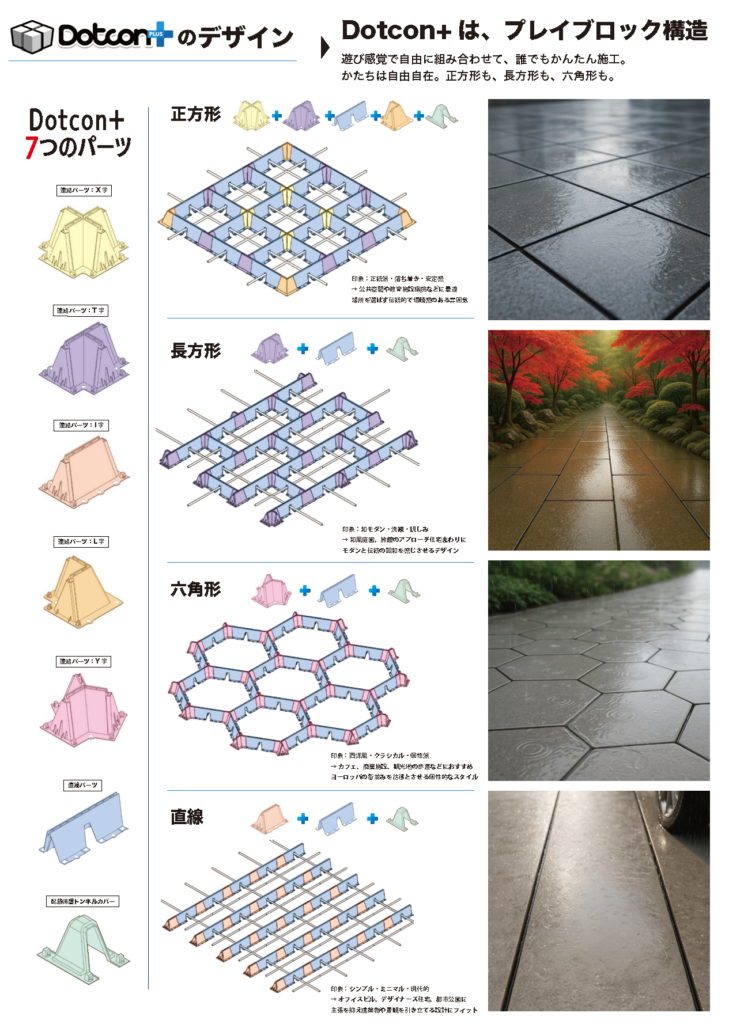 • 主用途:駐車場、公共施設、歩道、商業施設外構など